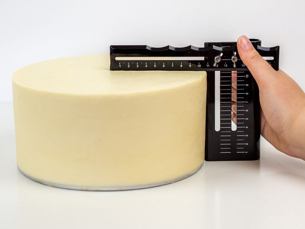 Edgy can be continuously adjusted to the desired dimensions using 2 sturdy screws. And this applies to both the height and the depth! You can reach a depth of up to 15 cm - this corresponds to a cake diameter of up to 30 cm. The maximum height is 11.5 cm.
